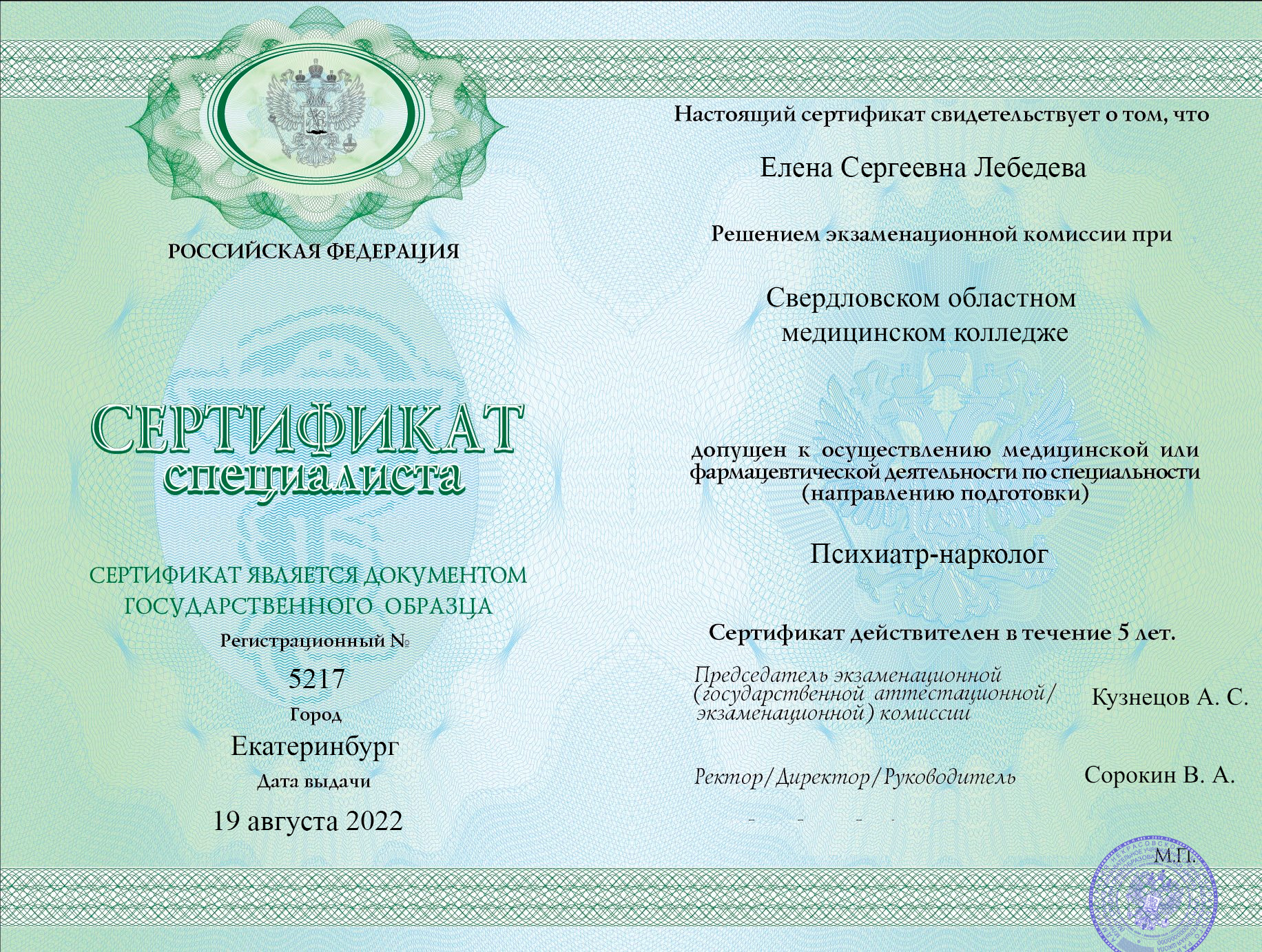 Елена Сергеевна Лебедева врач нарколог клиники доктора Стукаловой в Красноуральске